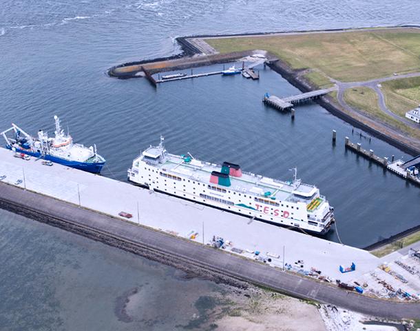 We offer public port and wharf facilities for two ships with a maximum load of 110 ton. The pier is 80 square metres big.