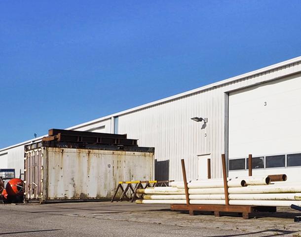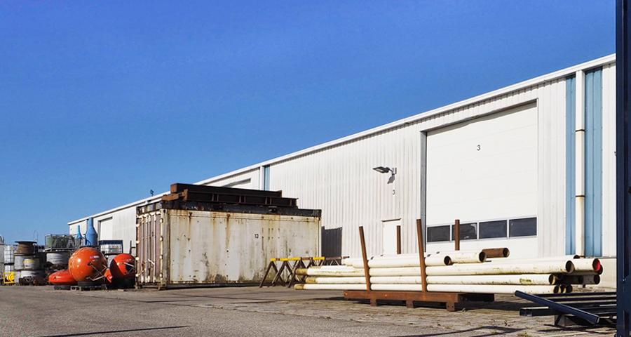 De goed toegankelijke loods op ons haventerrein biedt 1.100 m2 opslagruimte. Onze loods is gecompartimenteerd en biedt elke klant voldoende ruimte voor tijdelijke opslag van onderdelen.